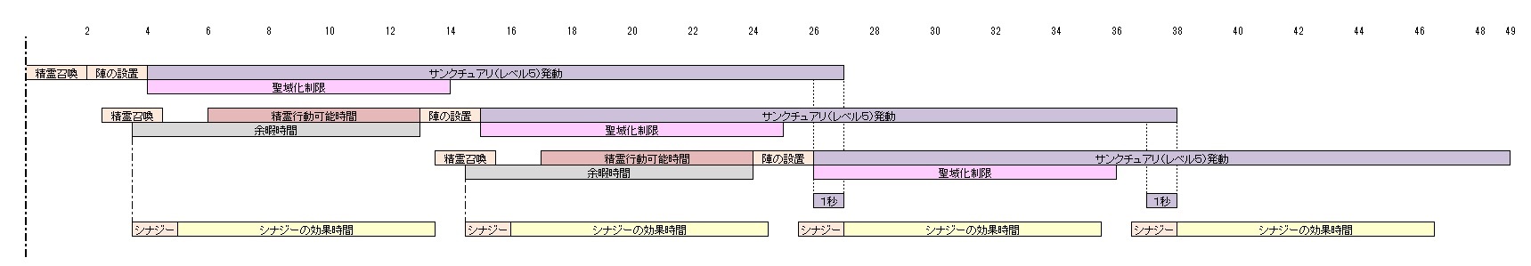 F1:古臭いキノコ(HP全回復)/ 移動スキル(瞬間移動、閃) / 乱発するバフスキル(シナジー、ホーリータッチ)