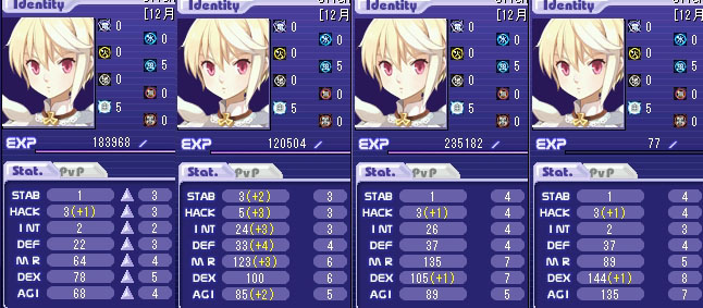 チャント型イソレットは基本、チャント先行(MR/INT)でステータスが育っていくため(MRが火力となる)、DEX、AGIを何も考えずに手振りであげつつ育成。