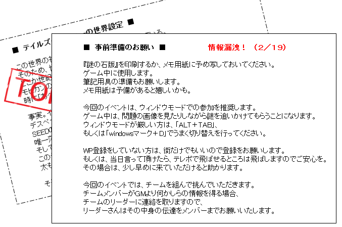 今回のゲームブック版シナリオはクライベで使用されたものと異なり、かなりシリアスな展開を繰り広げます。用意した謎は、挑んだ人がきちんと越せる可能性を踏まえて “2つ” に絞りました。