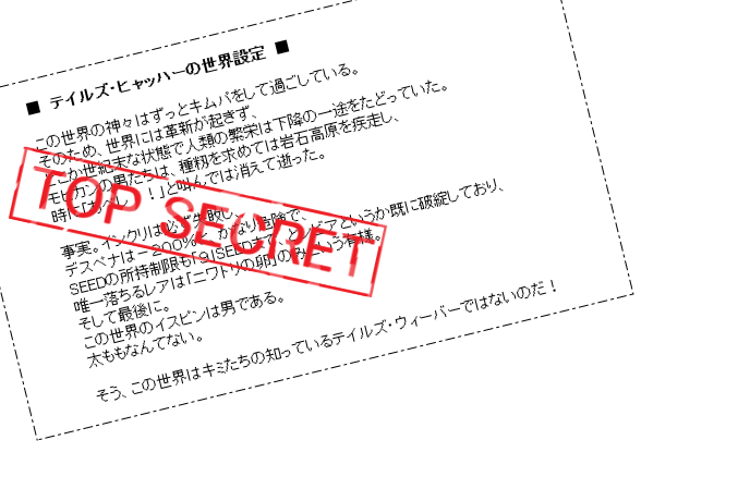 第二候補は「ラグナロク」(北欧神話における世界の終末を意味する単語)で、この場合は、囚われた世界そのものを破壊せよ!ってニュアンスでシナリオを書いていたと思われます。個人的にはこっちの方が好きだったのだけど、この単語の意味がどのくらい知られているのか、まったく自信が無かった……。